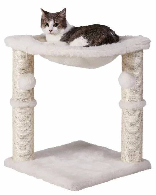 - Your kitty can rest comfortably in the hammock, play underneath or scratch the posts that are wrapped in natural sisal rope.