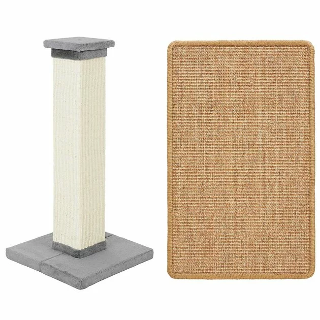 Keep your kitty’s claws healthy and your floors litter-free with this great duo of products. This bundle comes with the Frisco 33.5-in Sisal Cat Scratching Post and the Frisco Sisal Mat. The Frisco Scratching Post gives your furry friend a place where she can claw to her heart’s content. This vertical scratching post and tower in one is great for scratching and play, with a layer of durable, woven sisal on all four sides and a tall tower that makes it the perfect for full-body stretching. A double-layer baseboard provides it with added stability, and step-by-step instructions make it easy to assemble at home. The Frisco Sisal Mat is another useful bit of cat gear—a litter mat designed to catch and trap litter as it falls. It helps catch spills from the litter box and prevents your kitty from tracking litter all around the house. The sisal material gives it a stylish and natural look that goes great with any home décor, plus it’s easy to clean, with a slip-resistant backing to keep it in place. You and your cat will be very happy you got these for your home!