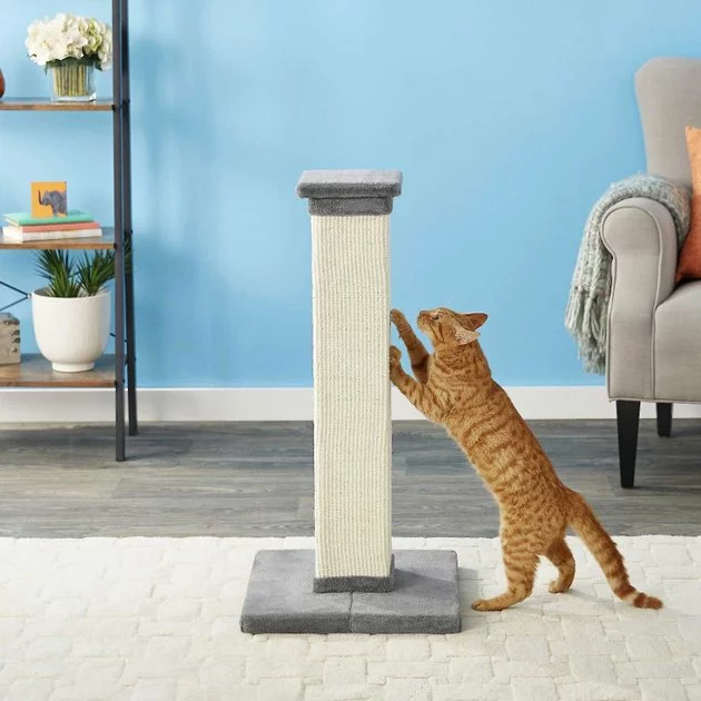 - Scratching post and tower in one gives kitties of all ages and sizes an appropriate place to scratch, which satisfies natural instincts and helps keep nails healthy.