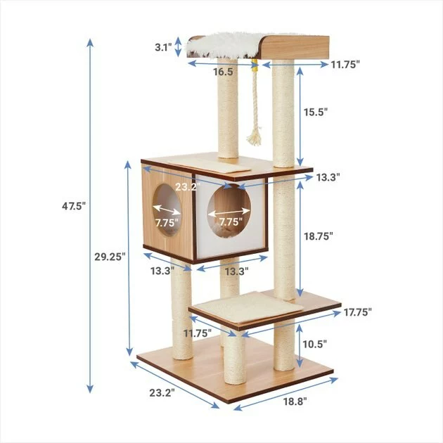 - 47.5-in tall cat tree helps satisfy your cat’s core needs at home—play and enrichment, scratching, privacy, comfort and elevated spots for napping and lounging.