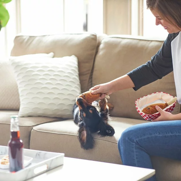 Send them on the field with a fun snack! This 3-in-1 toy will bring interactive furry fun to your pup’s baseball game. It features a plush basket and two detachable plush corn dogs that’ll engage your sporty canine at playtime. The built-in squeaker keeps this play session exciting all season long!