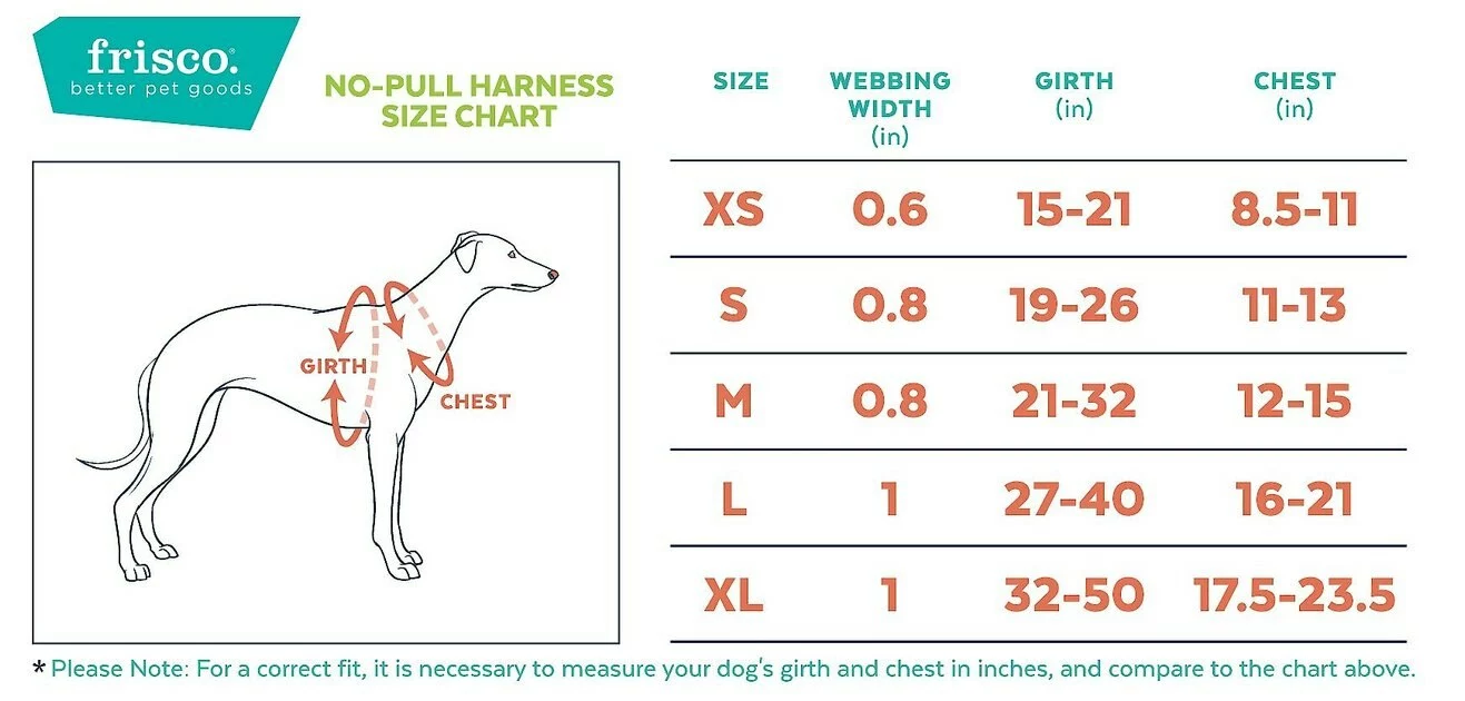 When it’s time for walkies, just strap on the Frisco Basic No Pull Harness and take a leisurely stroll, in control! This harness is easy to put on with dual quick-snap buckles and a belly strap in a different accent color, so you can get ready and get walking faster. Once you’re out and about, this harness really helps improve a dog’s leash etiquette and cuts down on pulling-pet frustration. It’s designed to help you stay in the lead of your pack by redirecting your pup’s pulls and helping them learn to follow and walk beside you, rather than pull you along behind them. When using the front D-ring attached to the martingale chest strap, your dog’s pulls apply pressure to their chest, which gives them a signal to ease up and stop pulling, turning their lunges into smart, gentle corrections. Enjoy your next walk around the block with a more polite pup!