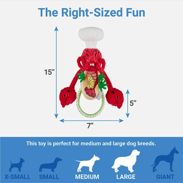 Frisco Brunch Lobster Roll Plush with Rope Squeaky Dog Toy