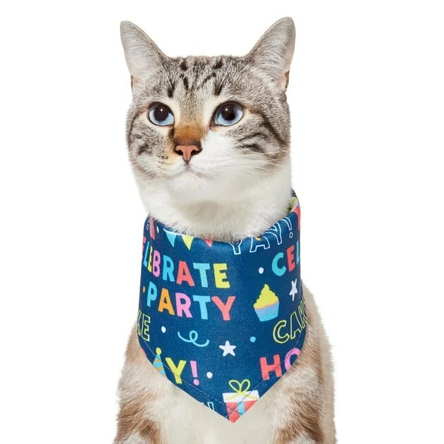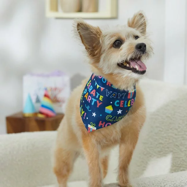 - Doggy bandana comes in blue with a fun text pattern so everyone will know whose special day it is.