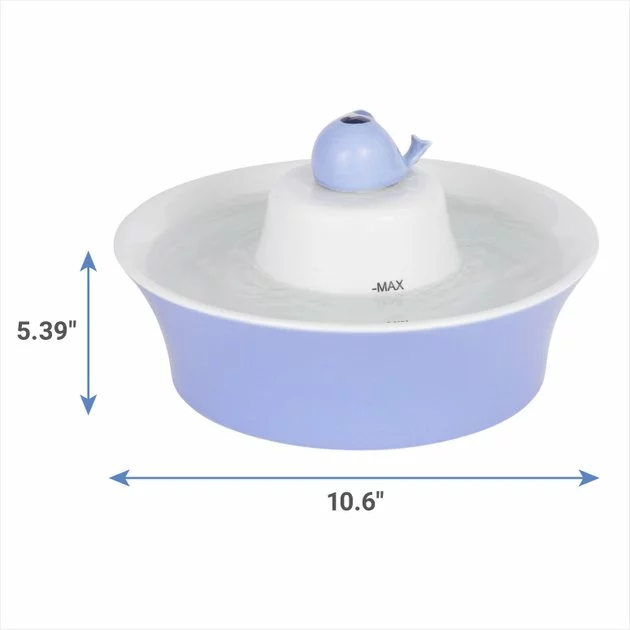 The Frisco Ceramic Whale Pet Fountain provides your pet with an enticing oasis to help them stay hydrated throughout their day, and it looks great in your home, too! You get the whole set—the bowl, filter and pump! The quiet, submersible pump with a six-foot cord keeps up to 64 ounces of water circulating through a filter sponge and carbon filter so your pet will always have crisp, clean and clear water for all-day refreshment. Plus, it’s just more fun to drink from, compared to traditional bowls! It’s got a sleek, rounded look and comes in a two-tone scheme with light blue and white, along with an adorable whale spout at the top. And to keep your pet’s fountain going, Frisco also makes replacement pumps and carbon filters. For the best results, remember to change your pet’s water filter every 30 days and give their water pump a clean once a week!