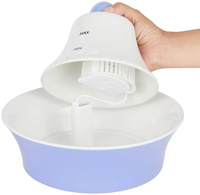 This fountain includes a submersible pump that keeps water circulating through a filter sponge and carbon filter so your pet will always have crisp, clean drinking water.