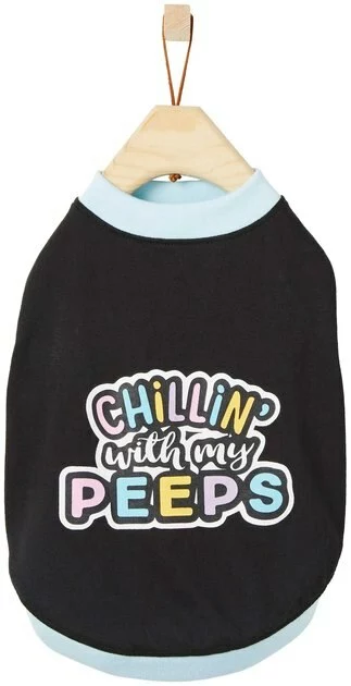 Get your pet excited for Easter with this adorable outfit! This lightweight shirt is made with a breathable cotton-polyester blend and features a “Chillin’ With My Peeps” pastel-colored print. The pull over style t-shirt makes it easy to get dressed and get hoppin’ to the Easter egg hunt. It’s the cutest casual chic addition to any pet wardrobe!