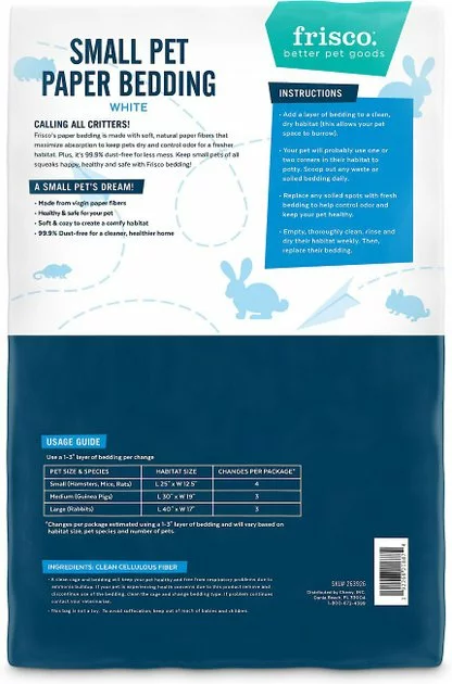 - Soft paper bedding helps keep your pet’s habitat comfy and dry.