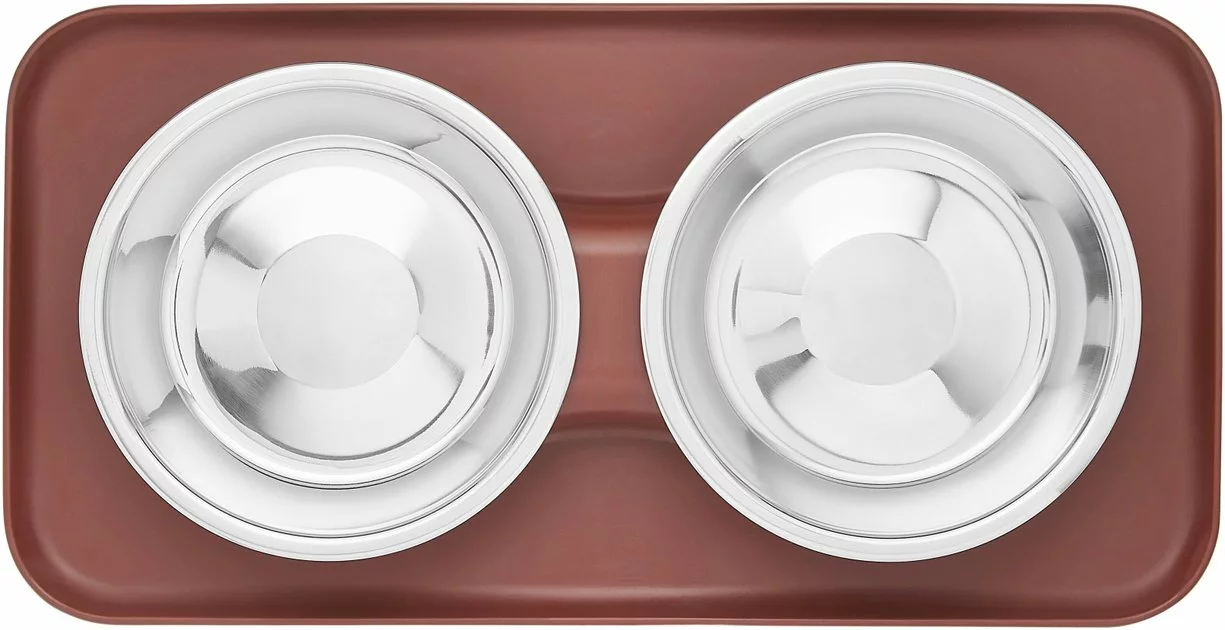 Dinner is serious business for heavy duty pets. Serve their meals in a heavy duty diner to match! The tough, silicone base features a rim that helps contain food and water messes, keeping your floors clean and all their grub where it belongs—in one convenient and easy-to-clean spot. This diner also includes two durable, stainless-steel, dishwasher-safe bowls in either a 3 or 6-cup capacity to fit your fur friend’s appetite.