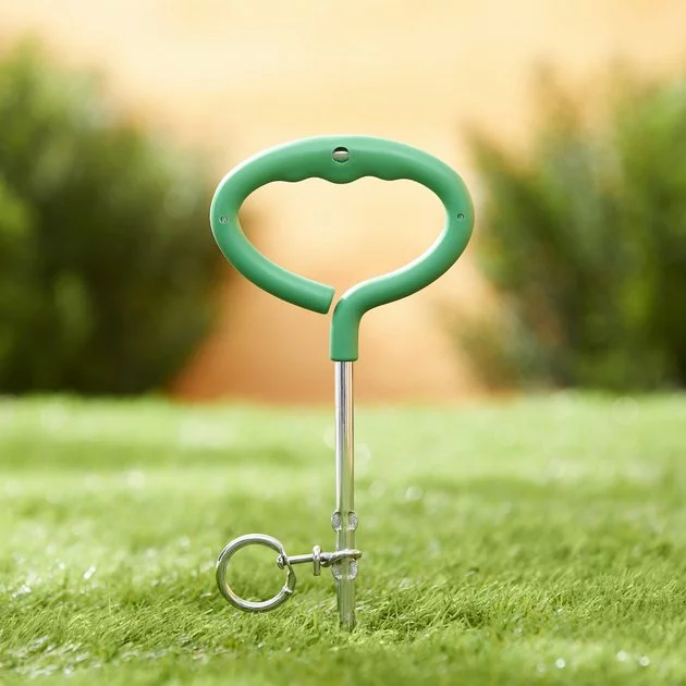 - Easy to use by driving into the soil—even rocky or hard soil—and using a tie-out cable (not included) to securely contain your dog when outside.