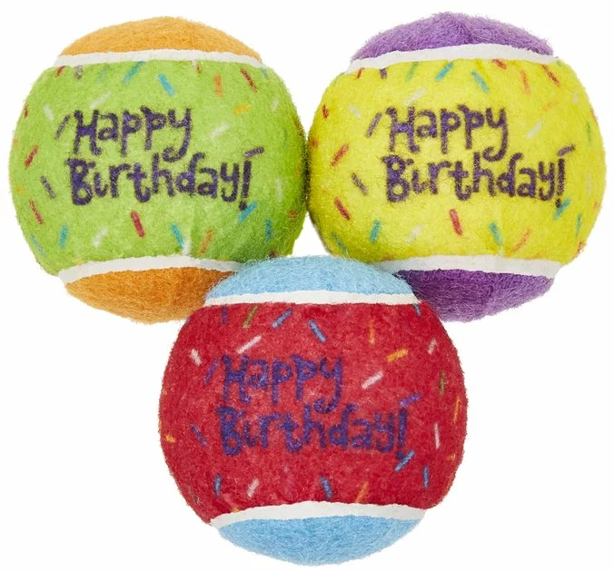 - Set of three squeaky tennis balls provides plenty of playtime opportunities to beat doggy boredom.