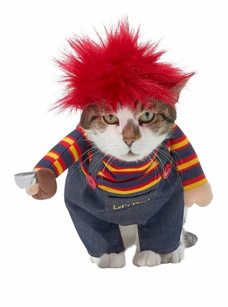 - Super scary frontwalking design turns your pet into a killer doll, complete with an axe.