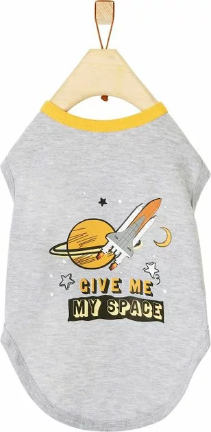 Remember to measure your pet for the paw-fect fit. Your pet will feel out-of-this-world when they wear the Frisco Give Me My Space Dog & Cat T-Shirt. This lightweight t-shirt is made with a breathable cotton-polyester blend and features a “Give Me My Space” print with a fun space-themed graphic. The pull-over style makes it easy to get your pet dressed—so they can be the center of attention! Plus, it’s machine washable and comes in different sizes to fit most pups and kitties.