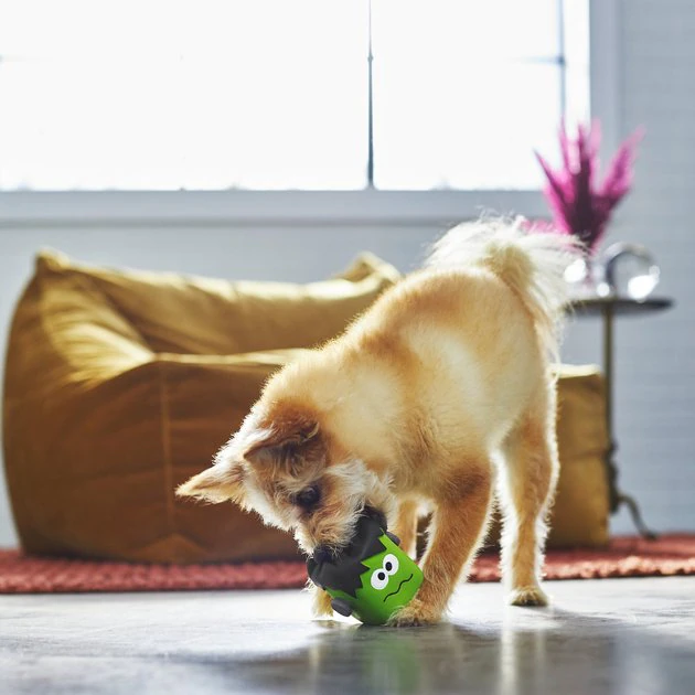 Monsterfy your pup’s spooktacular Halloween celebrations with a visit from a classic character: Frankenstein’s monster! This toy is made with squishy latex and features a built-in squeaker, so all your pup has to do is smush it a little to hear the symphony of squeaks inside. Whether your pup likes a game of catch or fetch, or some solo playtime, this new friend is up for it this Halloween!