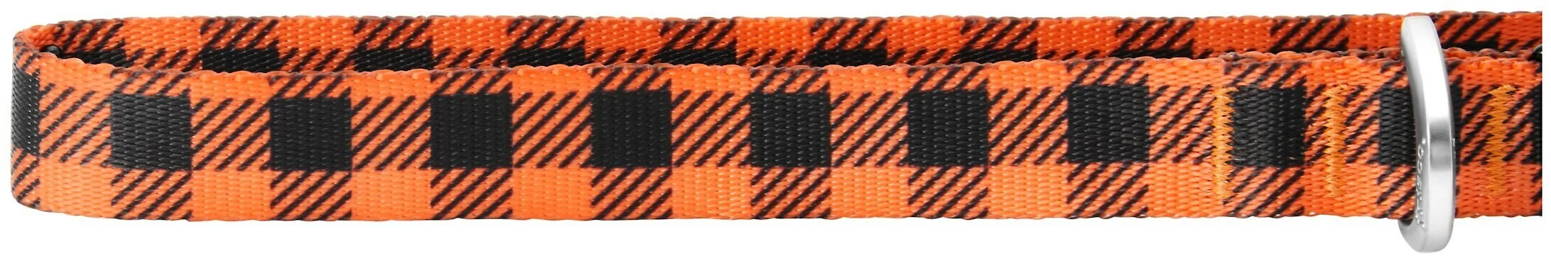- Dress up your dog’s Halloween look with an orange and black plaid collar and removable bow accessory.