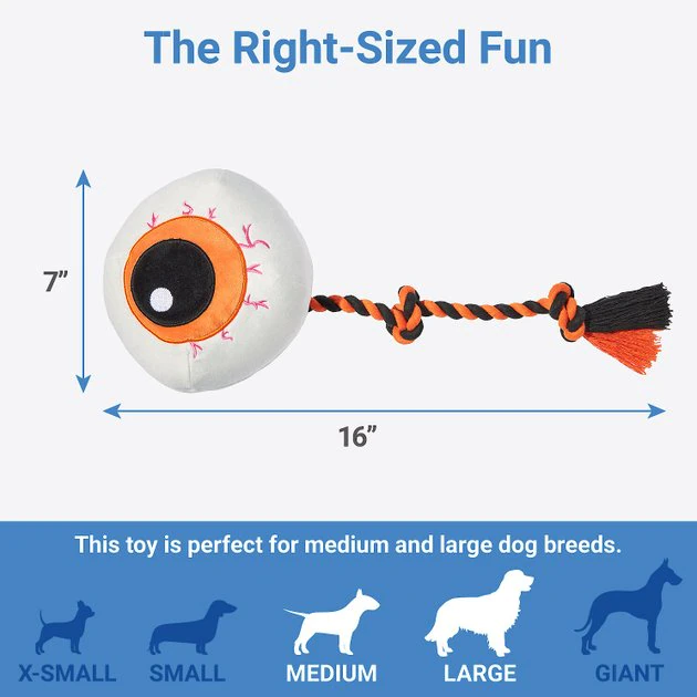 Frisco Halloween Spooky Eyeball Plush with Rope Squeaky Dog Toy