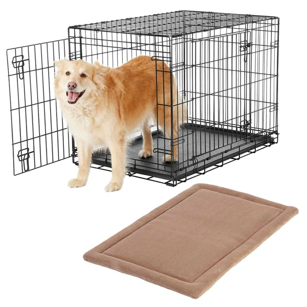- Comes with the Frisco Heavy Duty Fold & Carry Double Door Collapsible Wire Dog Crate and the Taupe Frisco Micro Terry Dog Crate Mat.