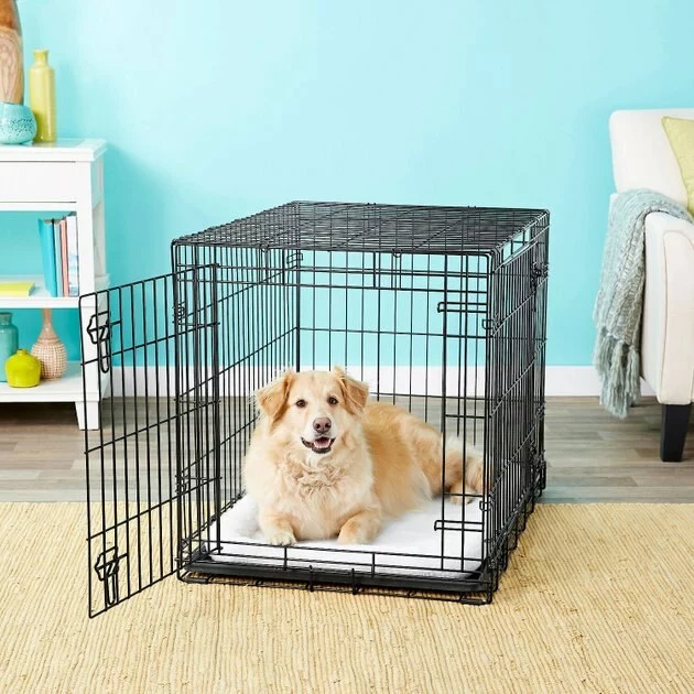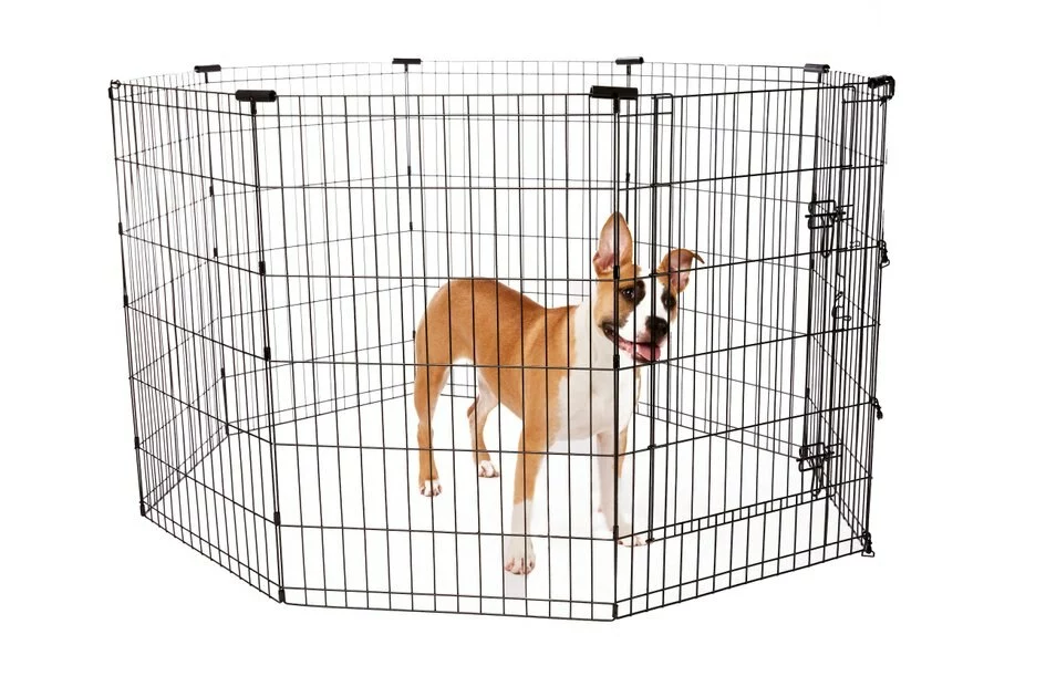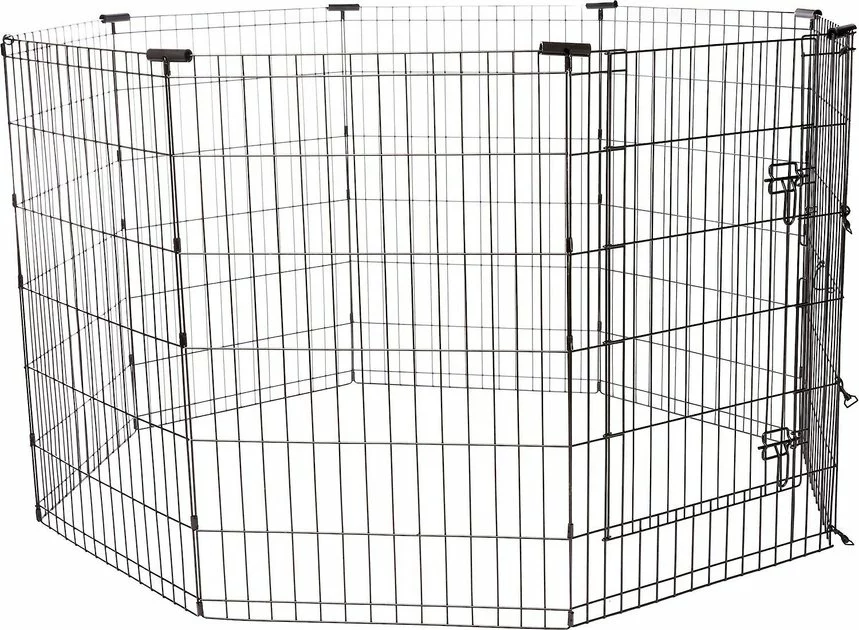Frisco Heavy Duty Fold & Carry Double Door Collapsible Wire Dog Crate & Frisco Wire Dog Exercise Pen with Step-Through Door, Black