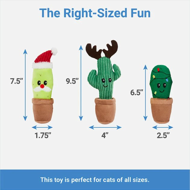 Frisco Holiday Cactus Plush Cat Toy with Catnip, 3 count
