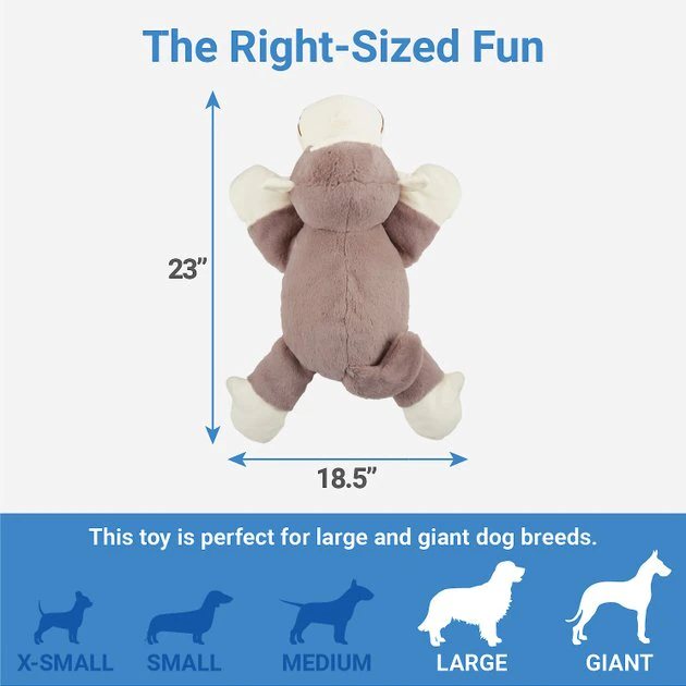 - Jumbo plush monkey dog toy features a built-in squeaker to make playtime even more exciting.