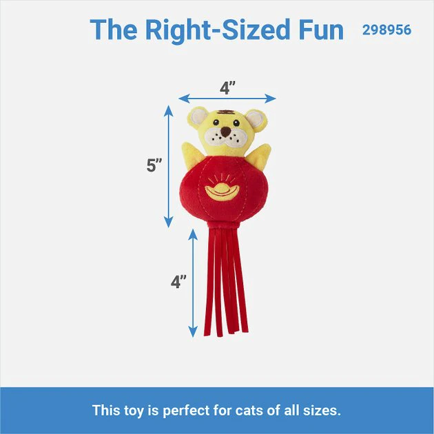 - Traditional Chinese New Year kicker toy features a tiger and lantern to celebrate with kitty.