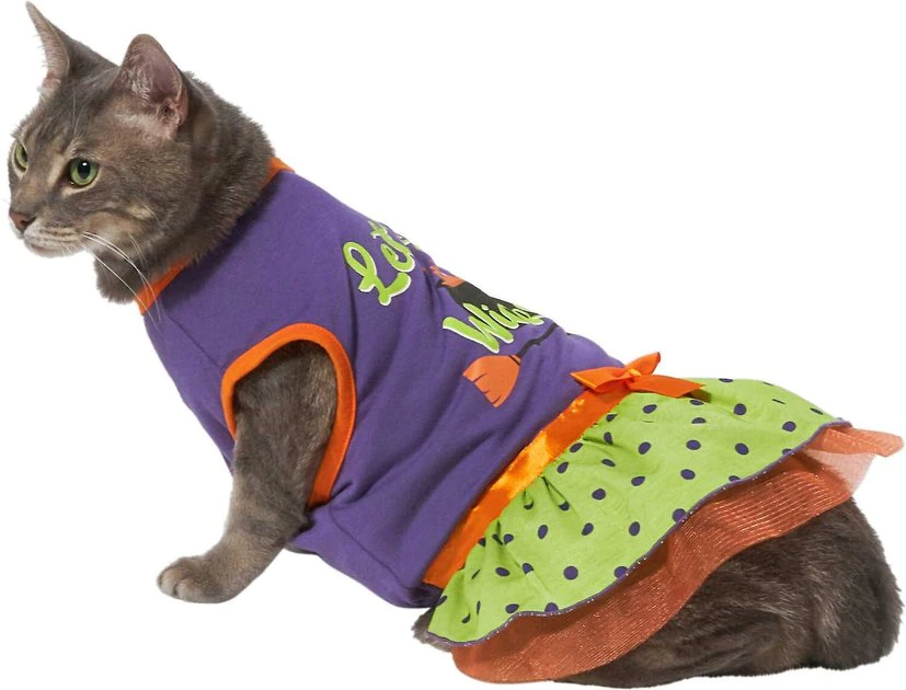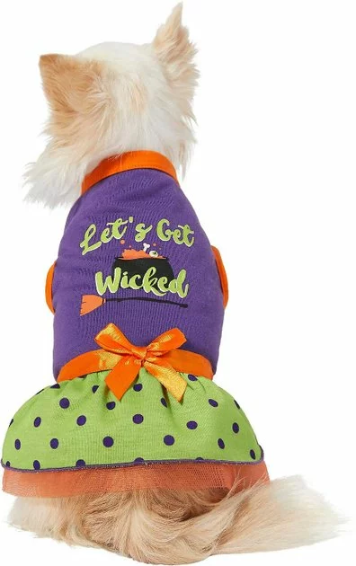 Get your cutie a costume to match! This super cute dress, with screenprinted, Halloween-themed artwork, has an easy, slip-on design that goes over your pet’s head for a comfy, secure fit. It’s got a tulle skirt with a cute polka dot pattern to add an extra touch of adorableness to your pet’s holiday getup. And it’s available in six sizes so you can find the right fit for your friend, no matter their breed. Whether you’re headed to a Halloween party or going out trick or treating, this dress will get your pet in the spooky spirit!