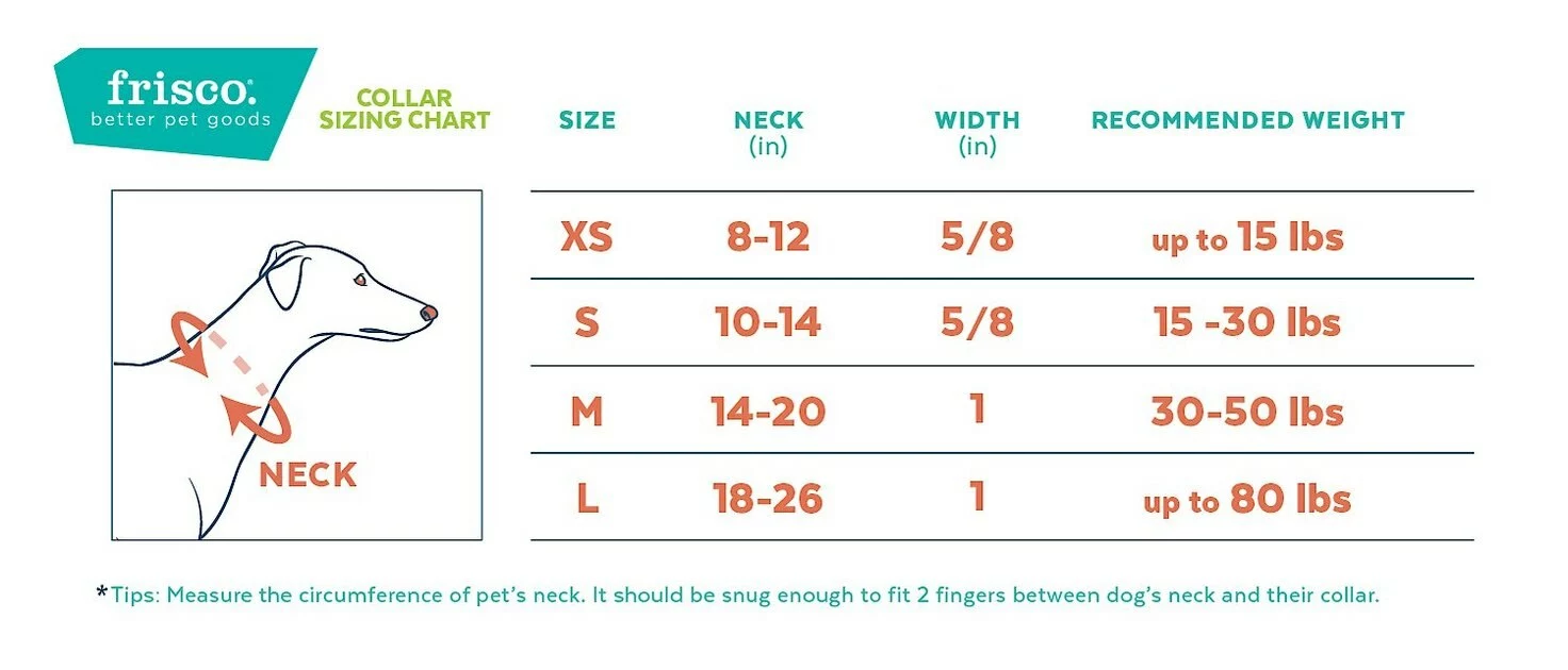 | Size | Neck Size | Collar Width | Recommended Pet Weight |