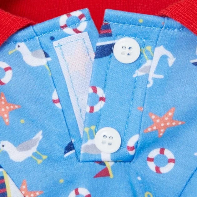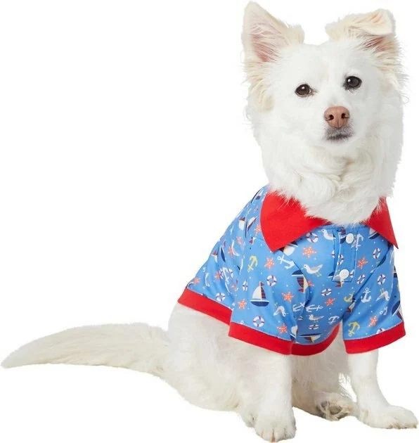 Remember to measure your pet for the paw-fect fit. Let your pup or kitty make a splash this summer with the Frisco Nautical Dog & Cat Polo Shirt. It’s made with a breathable and lightweight cotton-polyester blend so your pet can feel cool while wearing it. The nautical pattern is perfect for that casual seaside look, complete with a collar and hook-and-loop placket with faux buttons. A built-in leash hole lets your pet wear a collar underneath the polo. Plus, the pull-over design makes it easy to put on and take off.