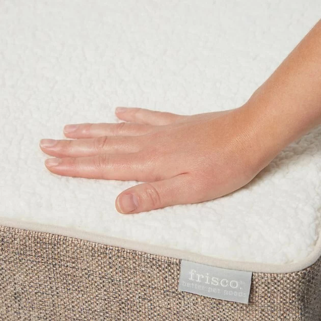 - Available in a brown faux linen or gray chenille fabric with a plush, sherpa sleep surface.