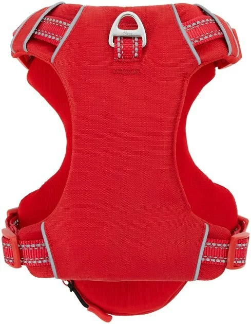 Remember to measure your pet for the paw-fect fit. This harness has a premium look and feel that you and your little explorer will appreciate out on the trail, around the block or wherever your travels take you! The body is made with lightweight, ripstop nylon and both the chest and back pieces have soft padding inside for your dog’s comfort on long walks. If your dog is a fan of a dusk or nighttime walk, you’re in luck. This harness also has reflective accents to increase your dog’s low-light visibility. It’s also completely kitted out for outdoor utility, with two expandable zipper pockets, a rear waste bag dispenser pocket to take care of business, and a comfort handle on the back that helps you easily give your dog a paw when getting in or out of the car or even over obstacles on your adventures. Plus, it has dual leash attachment points on the chest and back with D-rings on each. Get outside and enjoy the spirit of adventure with this premium Frisco harness!