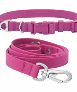 Frisco Outdoor Solid Textured Waterproof Stink Proof PVC Collar, Boysenberry Purple, Small – Neck: 10½14-in, Width: 5/8-in + Dog Leash, Boysenberry Purple, Small – Length: 6-ft, Width: 5/8-in