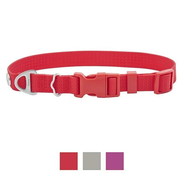 - The collar has a lightweight plastic buckle that clips in easily and securely and features a D-ring for leash attachment, a separate tag ring and an adjustable slider for sizing.