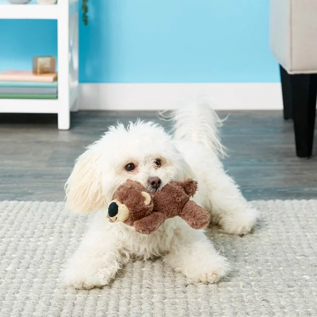 - Plush bear dog toy features a built-in squeaker to make playtime even more exciting.