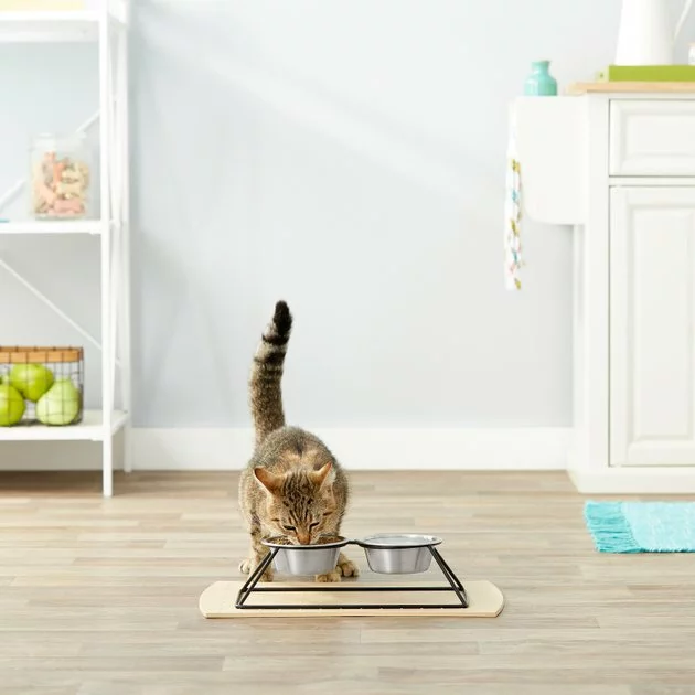- Elevated bowls provide a more comfortable eating and drinking height.