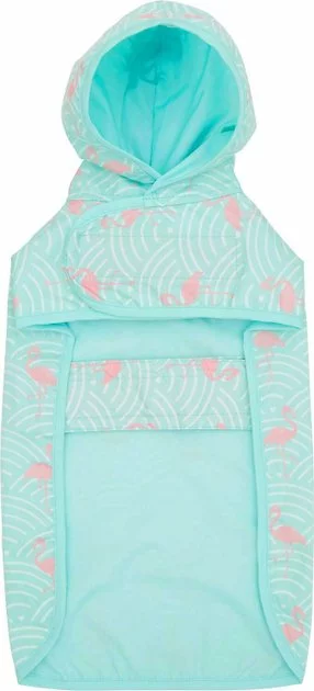 Rain or shine, always be ready to go with the fun Frisco Dog Rainy Days Raincoat in solid yellow or flamingo print. This doggy raincoat is made with a water-resistant PVC coating designed to keep your pup dry come drizzle or downpour, and it has secure neck and belly fuzzy fastener straps to ensure a snug fit all around—and a drier pooch. The built-in leash hole lets you attach a leash to a collar worn underneath the raincoat, so you can always be ready to dash, and the large reflective stripes help increase visibility for added safety. Plus, it’s available in sizes XS-XXL to fit pups of most proportions.