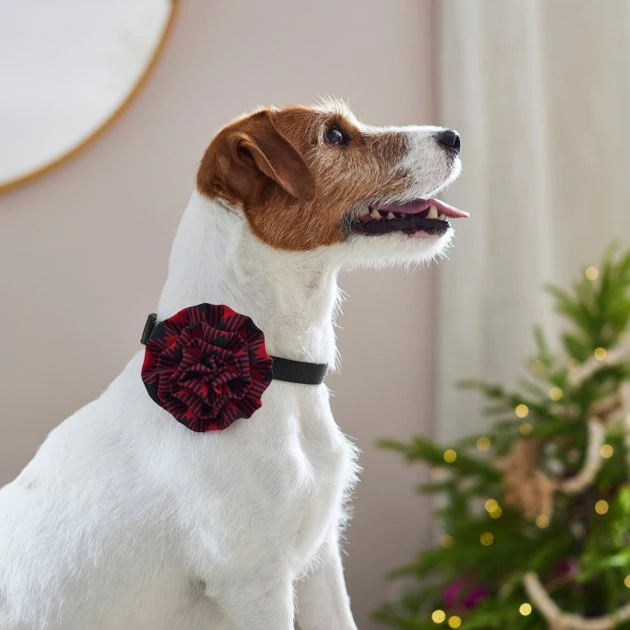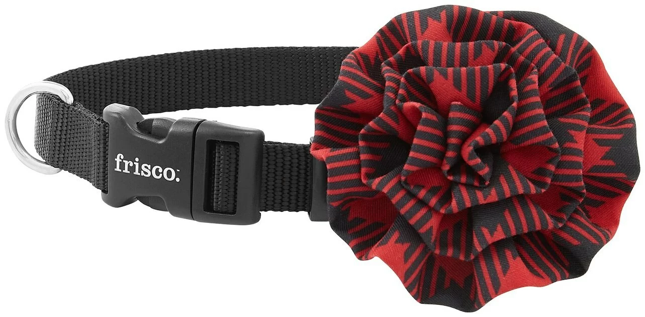 Make your pet’s collar pop with this festive Frisco Removable Collar Flower. It’s easy to put on—just slip it over the buckle on your pet’s collar—and voila! That’s a holiday look fit for any furry friend. With its classic, red-and-black buffalo plaid pattern, it’s perfect for all the holiday fun, whether you’re heading to a party, dressing for a photo op or just spreading some cheer throughout a winter day.
