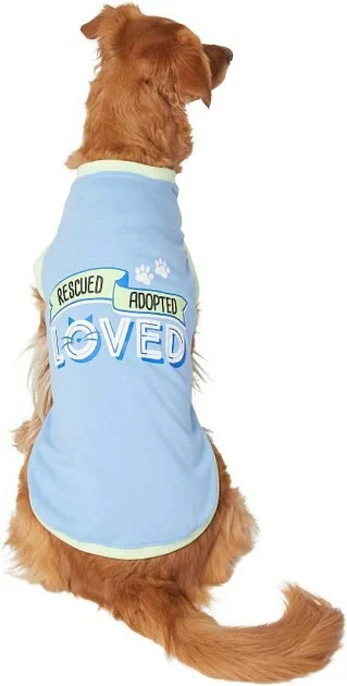 Remember to measure your pet for the paw-fect fit. Celebrate helping your pet find their fur-ever home with the Frisco Rescued, Adopted, Loved Dog & Cat T-Shirt. This blue lightweight t-shirt is made with a breathable cotton-polyester blend and features an adorable “Rescue, Adopted, Loved” print on the back. The pull-over style makes it easy to get your pet dressed—so they can be the center of attention! Plus, it’s machine washable and comes in different sizes to fit most pups and kitties.