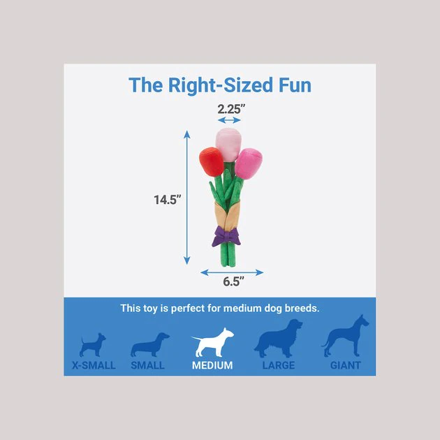 Who said dogs don’t enjoy flowers? This Valentine’s Day, give your special furry someone this beautiful rose bouquet plush squeaky toy. These three plush roses are bundled together and feature a squeaker and crinkle paper in each rose. Will they accept this bouquet? The answer is always “Woof!”