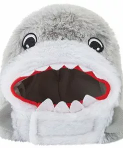 - Fits over your cat’s head with their face visible through the shark’s mouth.
