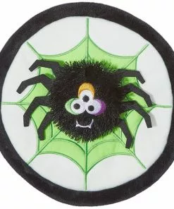 - Plush, squeaky spider web toy includes a flat spider web base and a detachable spider.