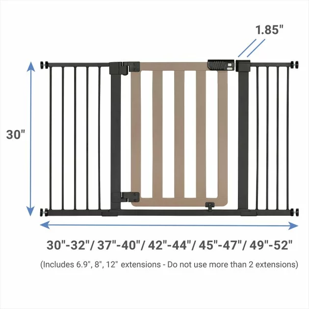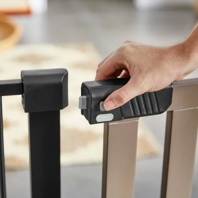 Set aside some space in your home just for your pet with the Frisco Wood & Metal Extra Wide Auto-Close Pet Gate. The extra-wide design fits larger openings and helps keep your pets safe and sound in their spot in your home. It’s made from steel with wood accents, so it’s lightweight, durable and it looks great in your home, too. The double-lock safety release makes sure the door stays securely locked when it needs to be, and the auto-close feature adds another layer of security and convenience. If you leave it open more than 90 degrees, the door will stay open—if you leave it open less than 90 degrees, it will automatically shut behind you. Plus, assembly is a breeze. All you need is a screwdriver or drill and a pencil, and the pressure mount system makes setup and takedown quick and simple.
