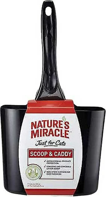Keep your kitty’s litter in the box where it belongs and enjoy quicker cleanups with the Frisco High Sided Cat Litter Box and Nature’s Miracle Just For Cats Litter Scoop & Caddy. The front wall features a step-in design for your cat to come and go easily, while the high sides and back help reduce litter scatter and contain cat spray. Attach the litter scoop and caddy to the side of the litter pan for easy storage and convenient access. All three pieces are made from durable, high-quality plastic that’s ready for kitty paws and messes big or small. Plus, the scoop and the caddy have an antimicrobial coating that helps prevent bacteria growth. Each piece cleans easily with soap and water. And when you’re ready for a new box, simply recycle this one—it’s purrfect not only for cats but also for eco-minded pet parents.