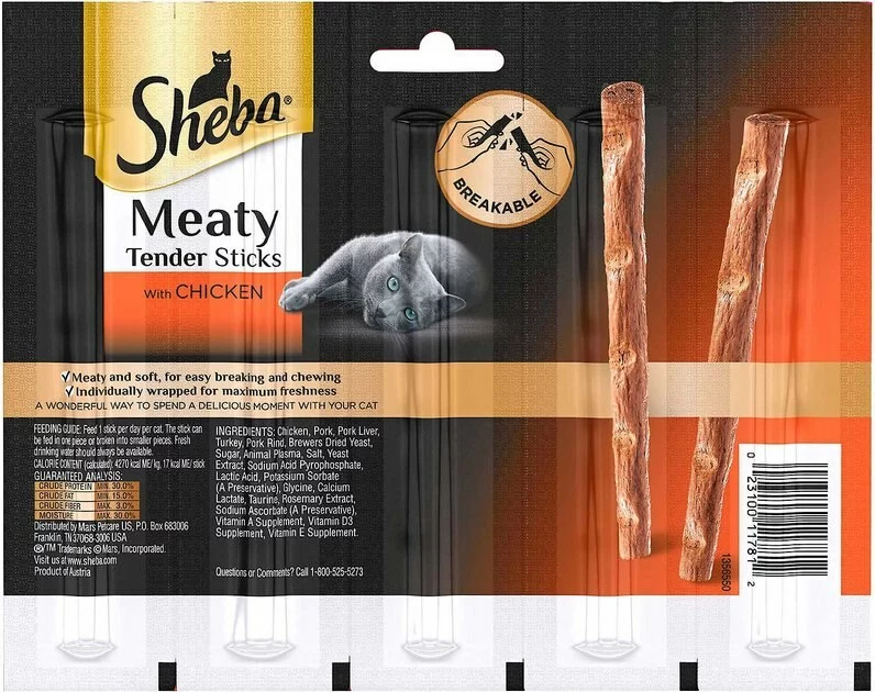 Sheba||Frisco Sheba Meaty Tender Sticks Chicken Cat Treats, 5 count + Frisco Moppy Ball Cat Toy, Blue